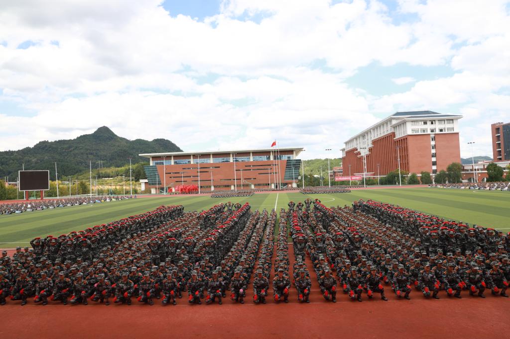 9月24日,开云app登录入口-开云(中国),2021级新生为期14天的军训圆满结束。学校在风雨操场隆重举行2021级新生军训汇演,学校党政班子成员、红花岗区人民武装部政委孟岳泉、全校教职工、2021级全体新生参加汇演。