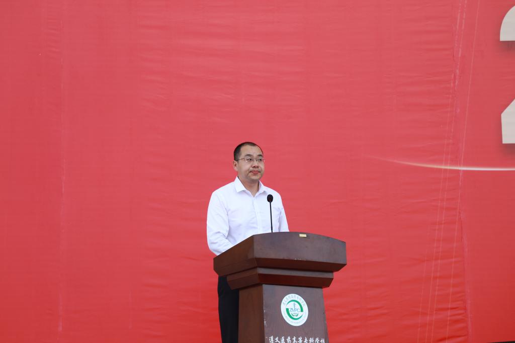 学校党委书记孙逐代表学校向辛勤工作的全体教官和老师们表示衷心的感谢并致以崇高的敬意,向顺利完成军训任务的全体新同学表示热烈的祝贺。她强调,为期14天的军训不仅增强了学生的体质,更培养了学生坚韧不拔的意志、百折不挠的精神、宽广博爱的胸怀,为即将开启的学医生涯的艰苦奋斗作风打下了坚实基础。并寄语2021级新生坚定理想信念,陶冶高尚情操;延续优良作风,练就过硬本领;厚植爱国情怀,勇担时代使命。秉承“勤学敏思,精业济世”的校训,志存高远、刻苦学习、立德修身、报效祖国,努力做又红又专、德才兼备、全面发展的中国特色社会主义合格建设者和可靠接班人,为健康事业、为健康中国贡献青春力量。
