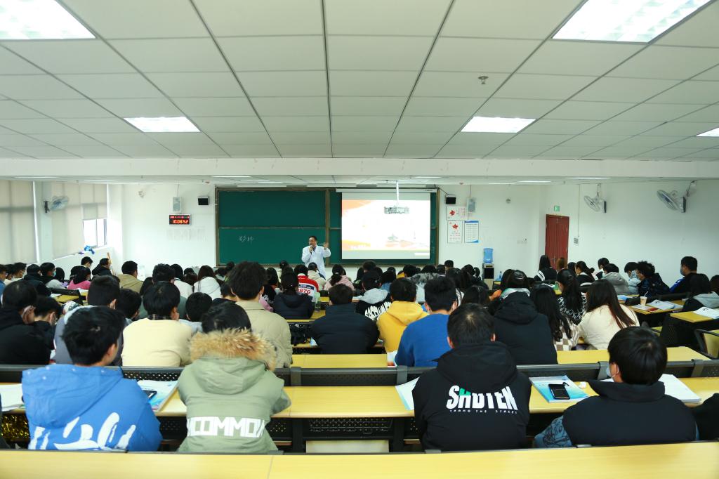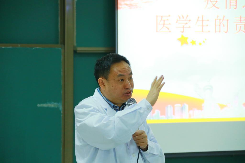 11月12日上午,校党委委员、副校长岳应权在综教206教室为药学系学生讲授题为《疫情之下医学生的责任与担当》的专题思政课。