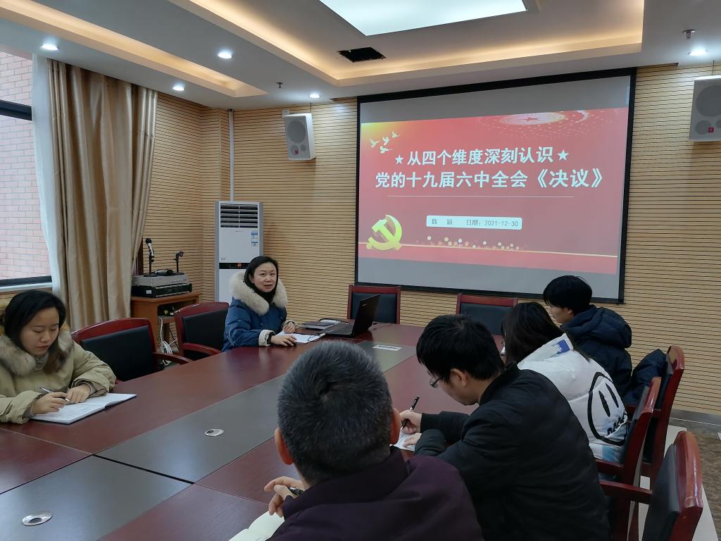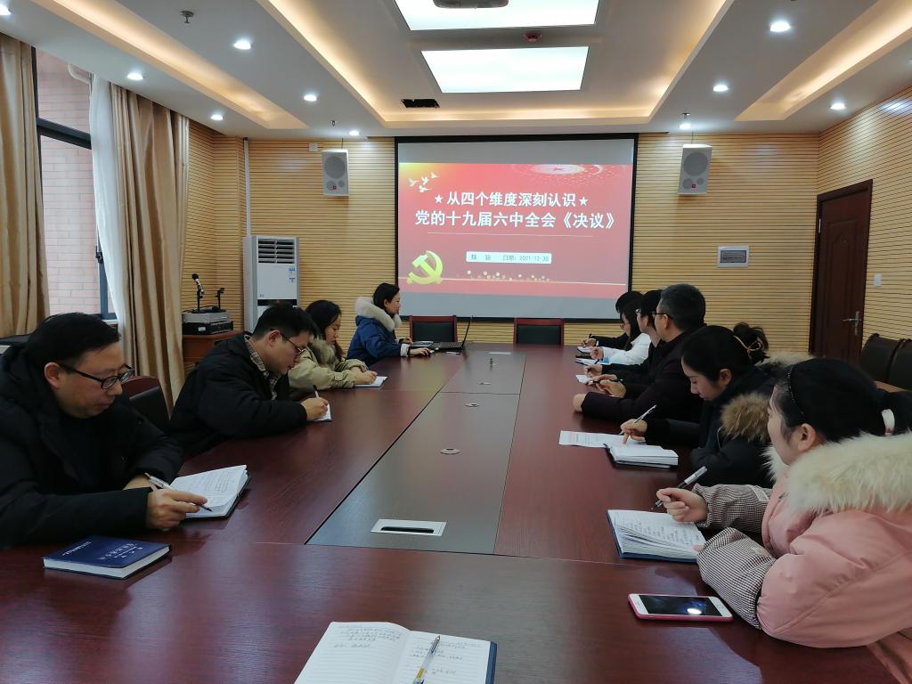 12月30日上午,学校党委委员、组织人事处处长在综合楼414会议室宣讲党的十九届六中全会精神,组织人事处全体干部参会。