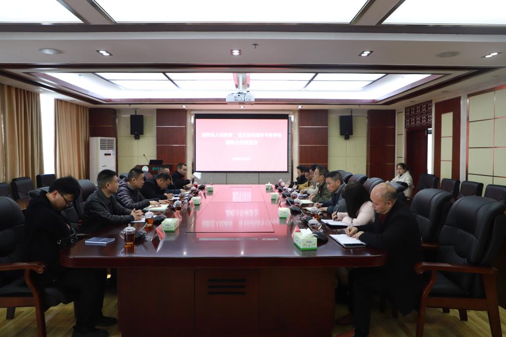 3月1日,我校与绥阳县人民政府战略合作座谈会在学校综合楼942会议室召开,绥阳县卫健局局长敖刚、绥阳县教体局副局长唐明翼一行七人,学校党委委员张彪、党政办、教务处、招生就业处、中医系、药学系等部门主要负责人参会,会议由张彪主持。