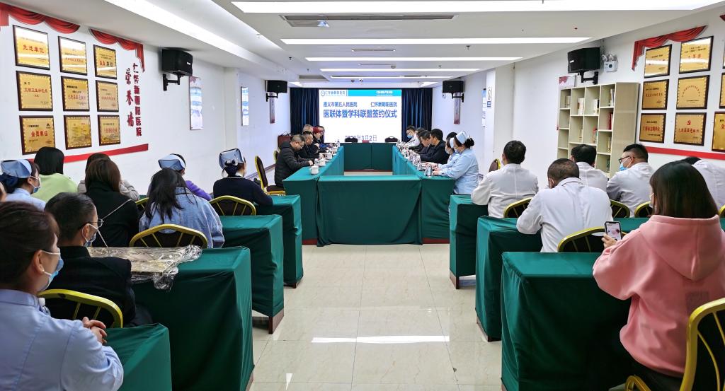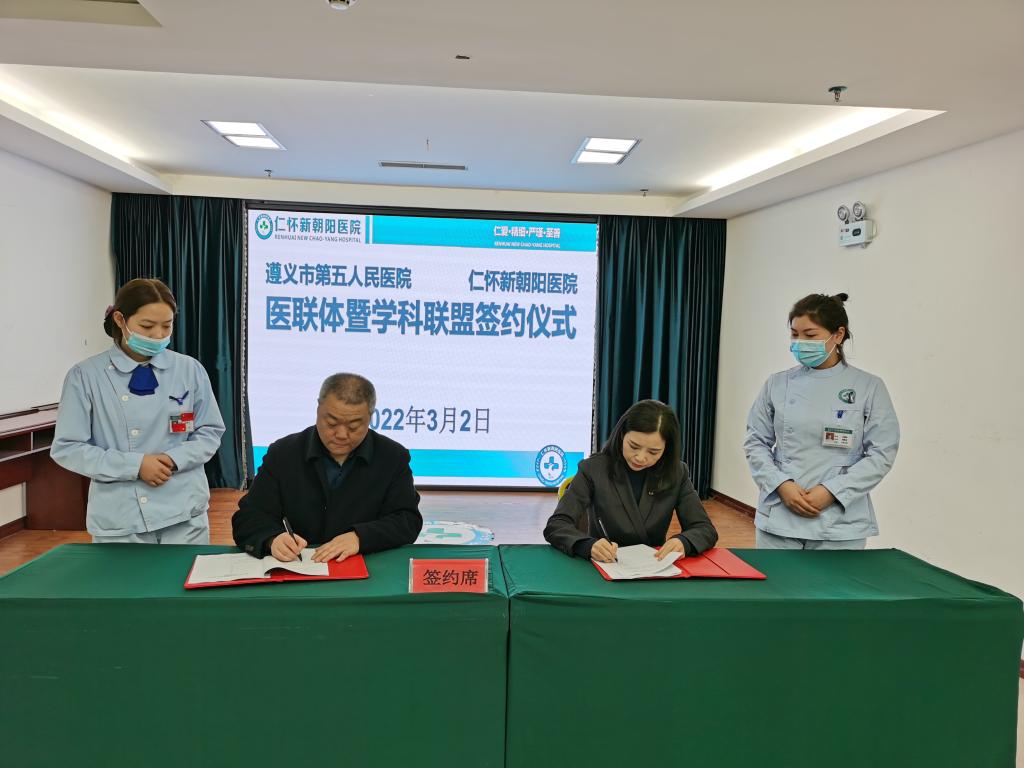 随后,双方签订医联体协议、遵义市泌尿疾病临床医学中心专科联盟协议、遵义市消化病临床医学中心专科联盟协议,遵义市第五人民医院医务部部长杨春代表医院向仁怀新朝阳医院授牌。