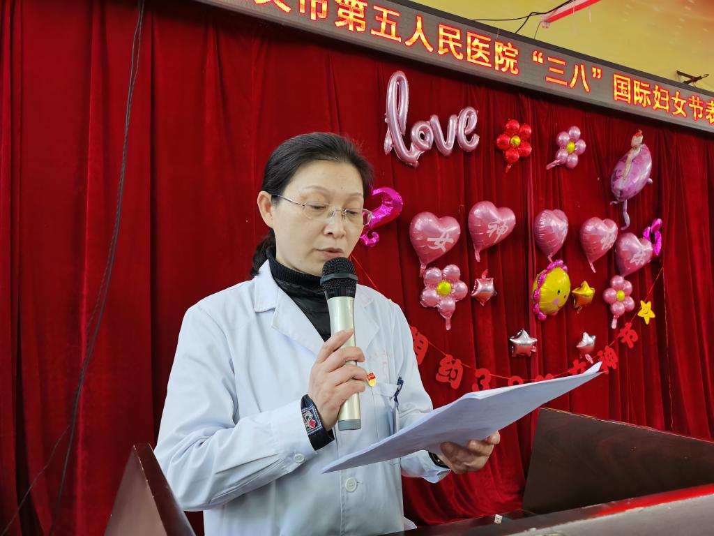 会上,院党委委员、副院长张文娟宣读了《遵义市第五人民医院关于表彰2021 年度三八红旗手(集体)的决定》。与会院领导向荣获“三八红旗集体”称号科室以及荣获“三八红旗手”称号同志颁发证书,表彰她们在过去一年中为医院发展做出的努力。