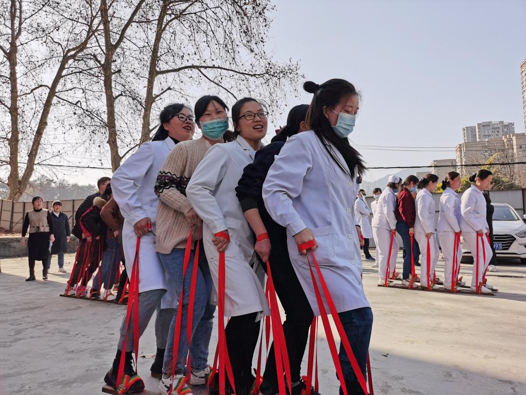 在一片欢声笑语中,趣味运动会拉开了序幕。本次趣味运动会设置了跳大绳、齐心协力、抢板凳等多个比赛项目。伴随着裁判长一声哨响,参加比赛的队员们立刻进入了比赛状态,整齐的口号,统一的步点儿,充分展示着新时代女性的风采和魅力;观战的同事,个个热情高涨,加油声、欢笑声此起彼伏,充分展现了五医人团结协作、不怕困难、力争上游的精神风貌。大家秉承着友谊第一、比赛第二的理念,发扬团结友爱、同心协力的精神,收获了快乐,也锻炼了身体。