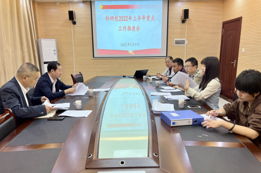 5月9日下午,科研处召开2022年上半年重点工作推进会,遵义市政协副主席、学校校长范奇元,校党委委员、副校长张彪到会指导工作,会议由科研处副处长匡晓燕主持,科研处全体教职人员参加。