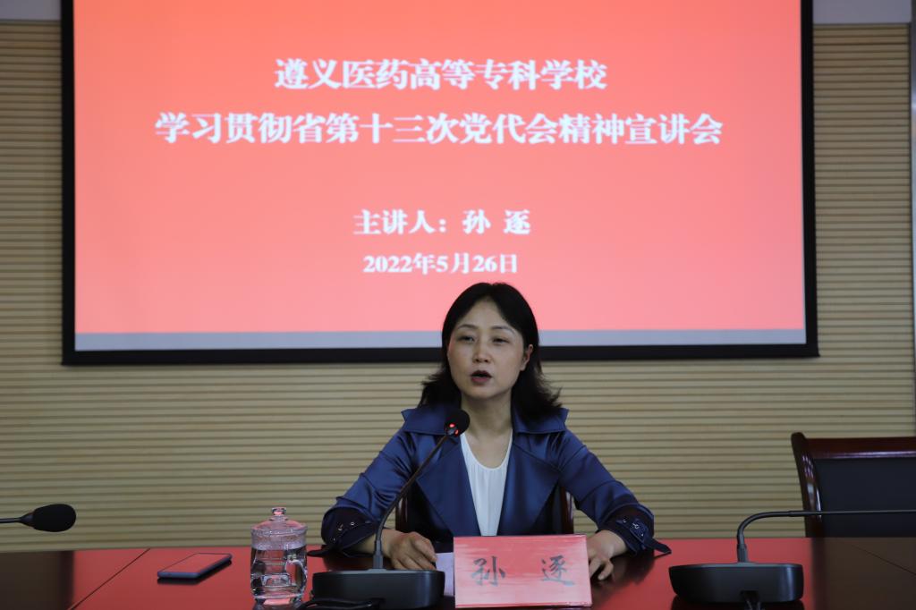 孙逐紧扣学习宣传贯彻省第十三次党代会精神主题,结合学校和省、市工作实际,对省第十三次党代会精神进行全面宣讲和深入解读,讲历史,案例详实生动,讲现状,关爱语重心长,讲未来,寄托殷殷期望。孙逐鼓励师生认真学习领会省第十三次党代会精神,更加紧密地团结在以习近平同志为核心的党中央周围,高举伟大旗帜、牢记领袖嘱托,用奋斗书写精彩答卷,用实干开创美好未来,奋力谱写多彩贵州现代化建设新篇章,以优异成绩迎接党的二十大胜利召开。