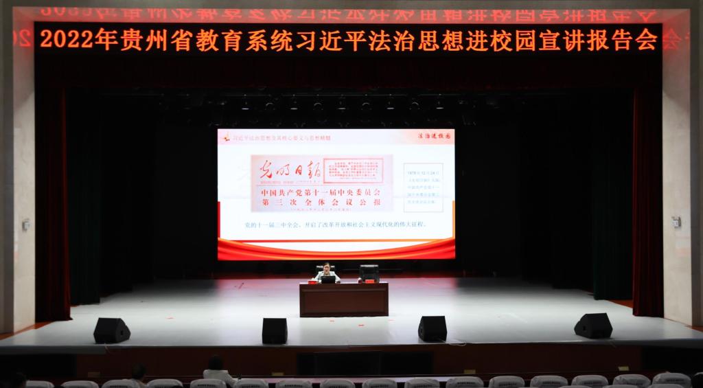 为强化“法治进校园”普法宣传教育力度,给高校大学生种下法治信仰的种子,进一步增强高校师生的法治意识,促进“平安校园”建设,5月26日,贵州省教育系统法治宣讲团成员,遵义医科大学副教授张渝到我校做了题为《增强法治观念,树立法治信仰》的宣讲,为我校师生送上一堂精彩的法治课。党委委员、宣传部部长黄学军主持。学校辅导员、专职组织员及400名同学参加听讲。