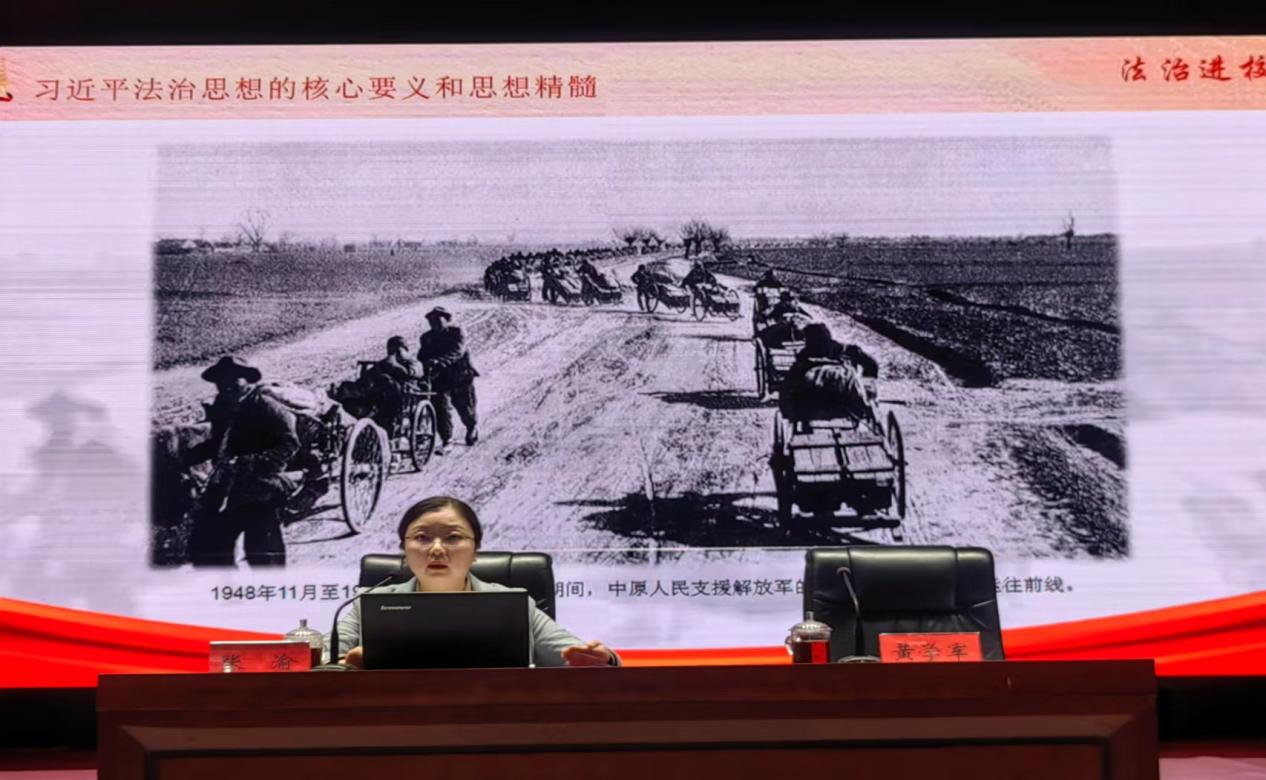 张渝生动地讲述了习近平法治思想及其核心要义与思想精髓,深刻阐释了十八大以来党领导人民进行法治建设取得的辉煌成就,理解了习近平法治思想是根源于实践、运用于实践、在实践中经受检验,在检验中创新发展的科学理论。同时通过以案释法的形式向师生们传递了法律知识,旨在提高大家的法治观念,提升大家的法制思维能力。每个案例都来自我们身边真实发生的事例,让师生从这些真实案例中感受知法、守法、用法意识及提升自我保护能力。