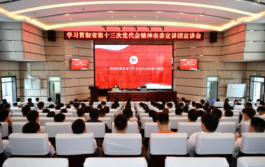 黄学军紧扣学习宣传贯彻省第十三次党代会精神主题,结合学院学生学习、生活实际,从深刻把握省第十三次党代会的重大意义等七个方面对省第十三次党代会精神进行了全面宣讲和深入解读。