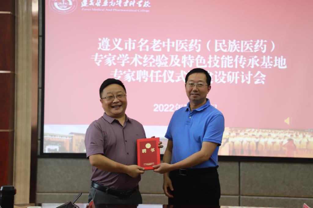 范奇元向与会专家介绍了学校的基本情况,并对各位专家支持和参与我校教育教学、科研建设、学术交流等工作表示感谢。同时,范奇元还逐一为与会专家颁发聘任证书,诚挚邀请与会专家受聘为学校特聘教授,助力学校专业建设与教育教学改革,为传承遵义地区经典中医药文化、助推遵义市中医药事业向纵深发展共同奋斗。