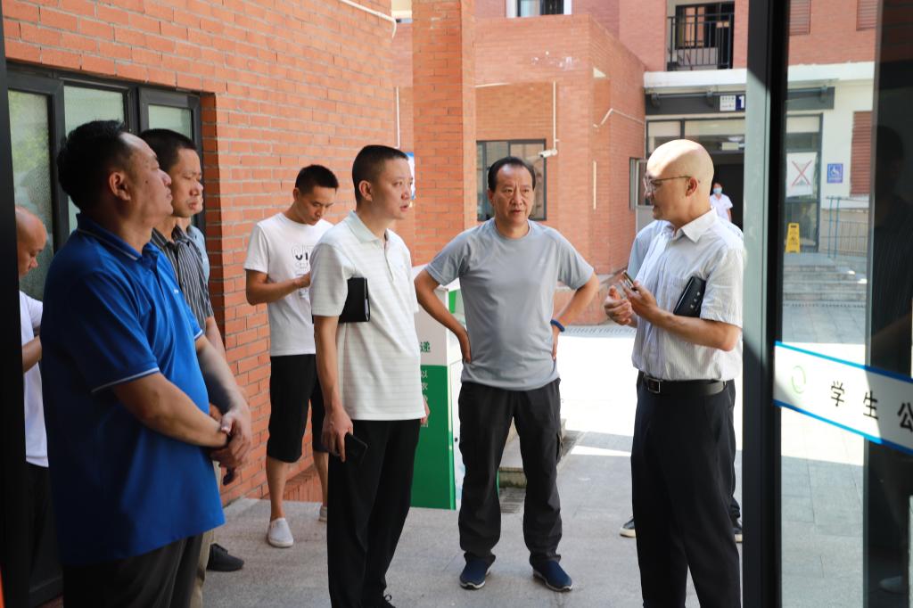校领导俞松一行先后现场查看了门岗、监控室、食堂、宿舍等场所,听取了保卫处、后勤处的现场汇报。