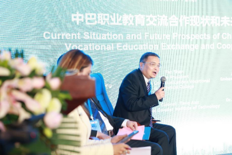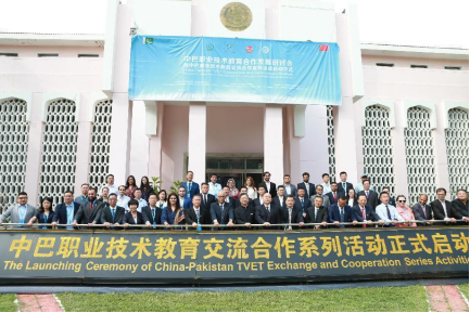 中国国际教育交流协会副秘书长余有根、中国高教学会“一带一路”分会副秘书长周晓敏、唐风国际教育集团总裁李劲松及巴基斯坦国家技术大学技术和职业教育委员会、巴基斯坦国家职业技术教育委员会、旁遮普省、信德省和KP省技术教育与职业培训局负责人在仪式上作了主旨发言。