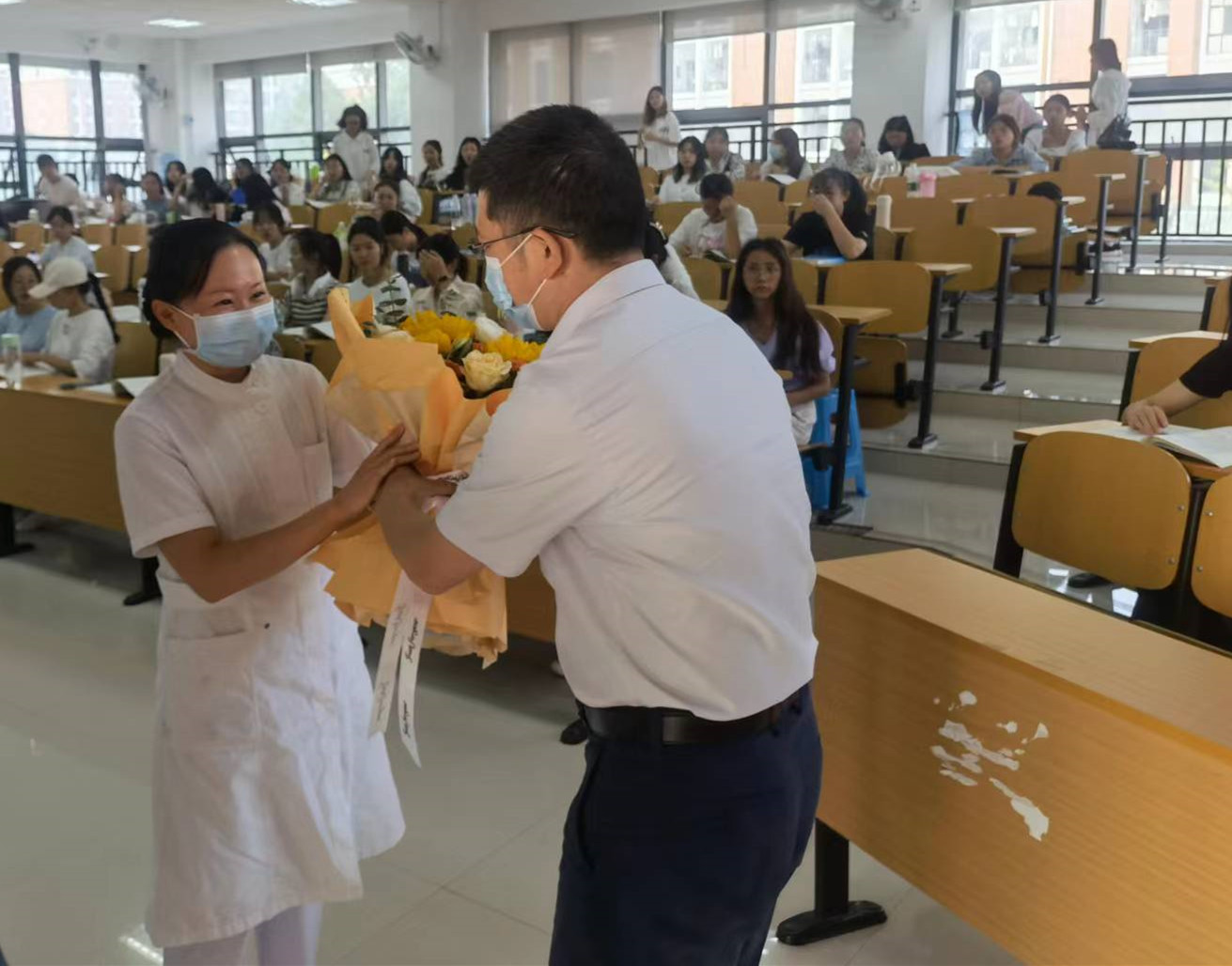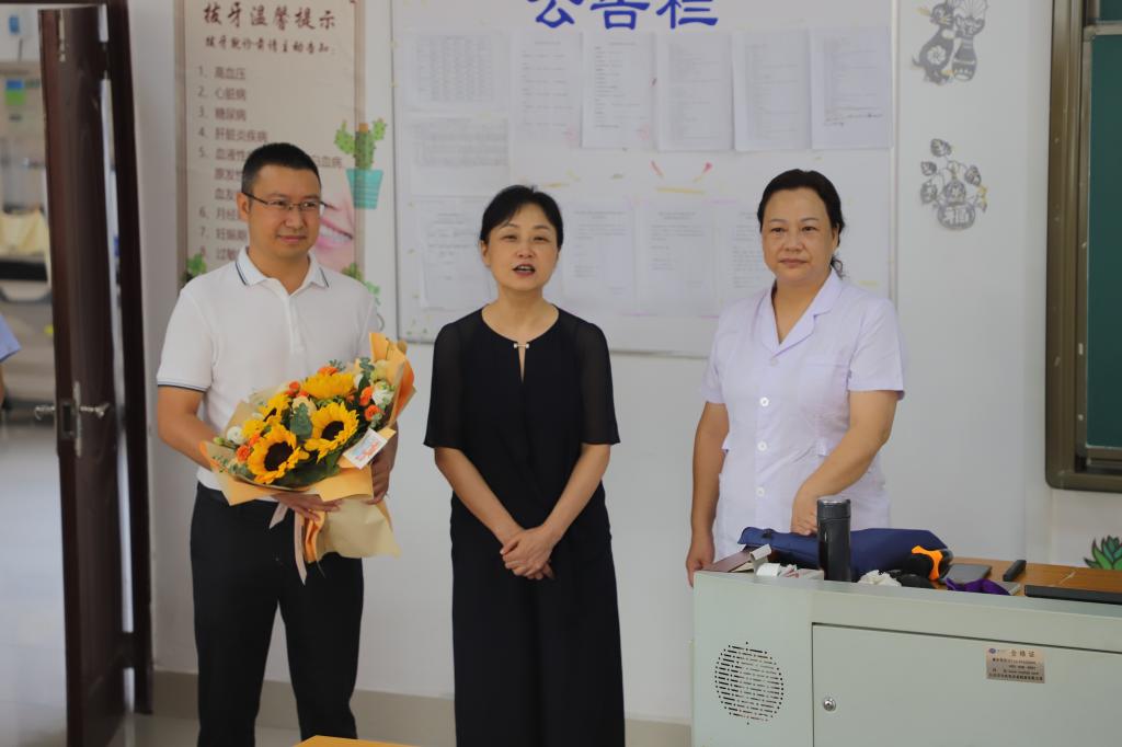 9月9日上午,在第38个教师节来临之际,校领导孙逐、张武晓、岳应权、覃晓龙、张彪分别带队到临床医学系、医学技术系、卫生管理系、药学系、护理系和综合教学楼慰问教学一线教师代表。