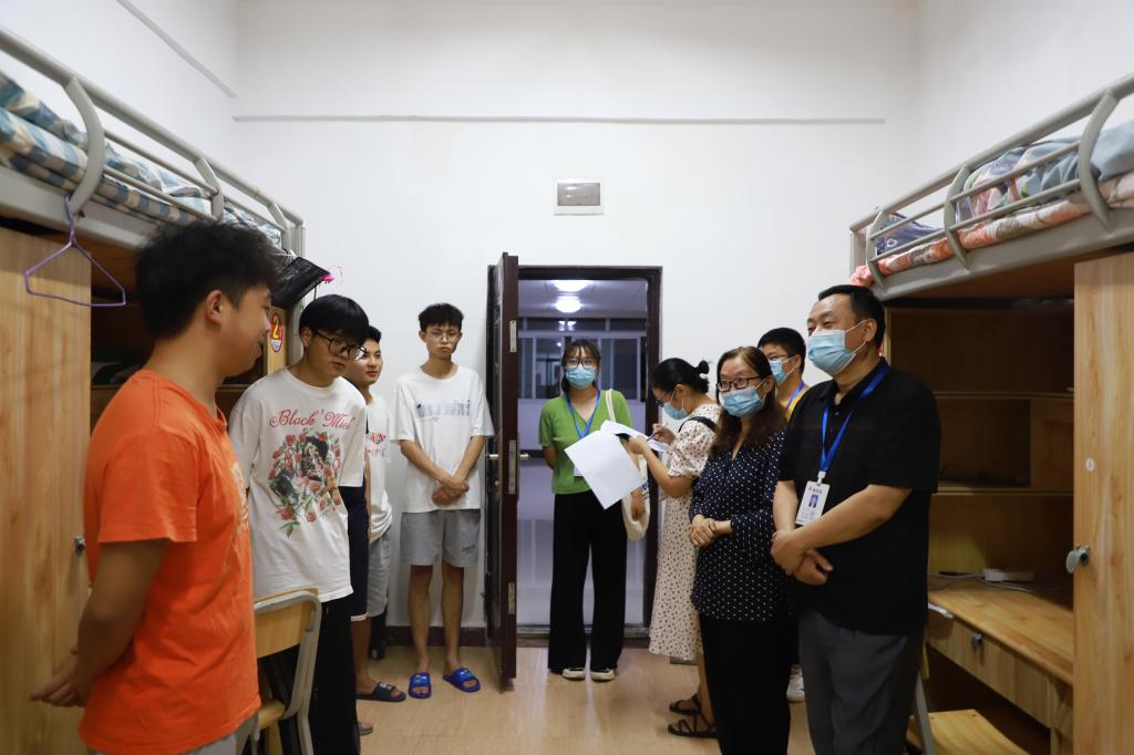 为切实做好疫情防控新形势下教学运行及学生保障工作,及时了解学生的思想动态、学习情况、心理状况,确保疫情防控期间学校各项工作有序、平稳开展,自9月16日以来,学校党委书记孙逐,党委副书记、校长俞松及校领导班子成员每晚带队深入走访学生宿舍,为同学们送去殷切关怀和深切慰问。