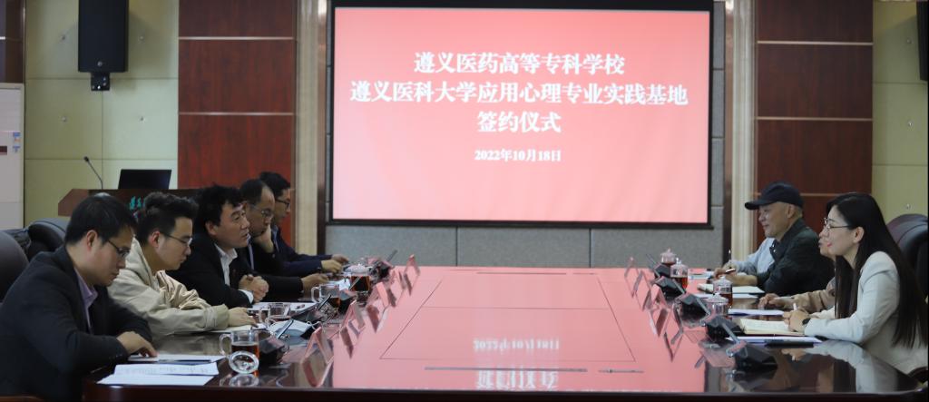 10月18日,我校与遵义医科大学在综合楼942会议室举行应用心理专业实践基地签约仪式。遵义医科大学教务处副处长张继东、管理学院副院长魏来、应用心理学专业负责人朱千等一行,我校党委委员、心理咨询中心主任黄学军,学生处处长杨权勇以及心理咨询中心相关人员参加仪式。