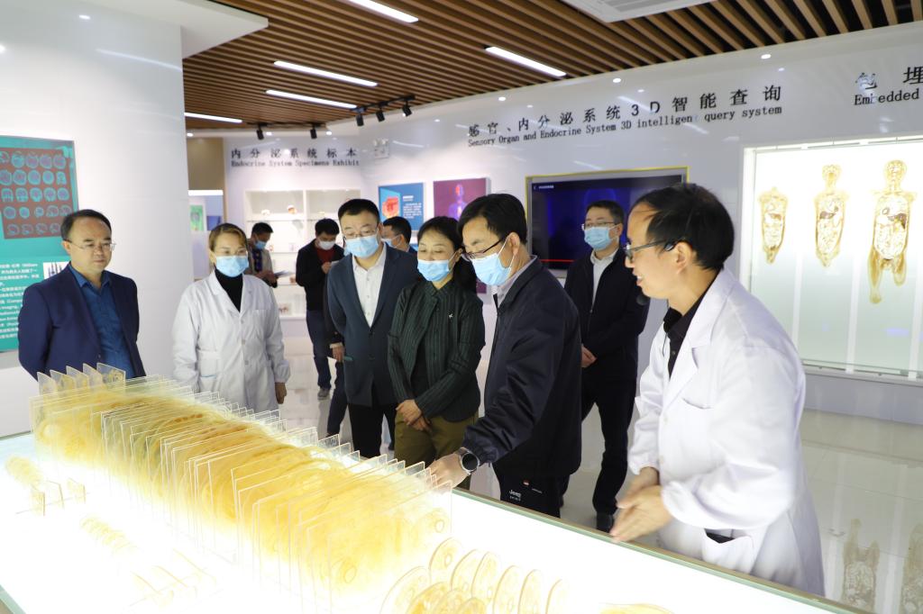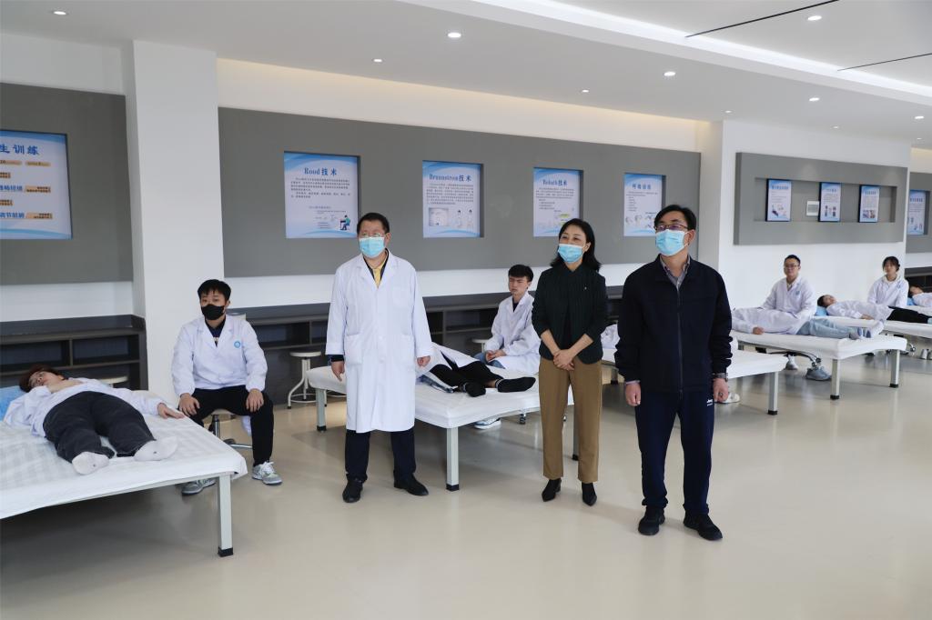 杨天仪一行先后参观了学校康养实训中心和生命科技馆。孙逐就学校专业建设、人才培养、师资队伍、科研与社会服务、校企合作与校院合作、职业教育发展等方面进行了汇报。