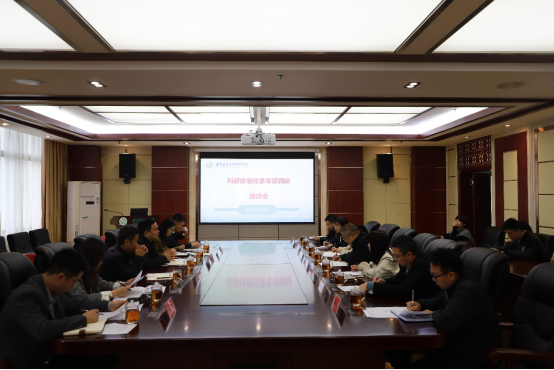 11月8日,市科研体制改革专项调研组到我校开展调研,调研组由市科技与大数据局大数据发展中心主任卢川带队,市委政策研究室改革科科长朱泽浪、市科技与大数据局办公室主任杨小倩等一同调研,双方在学校综合楼942会议室进行座谈交流,校党委委员、副校长张彪、党政办、组织人事处、科研处、药学系、中医系等相关人员参加座谈。