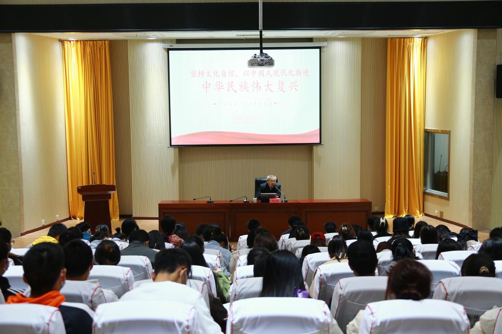 张彪以《坚持文化自信,以中国式现代化推进中华民族伟大复兴》为题,将坚持文化自信、弘扬中华优秀传统文化的本质、特色、使命三个方面与中国式现代化的概念、中国式现代化的来源、中国式现代化的目标、中国式现代化如何实现四个方面结合起来,为学生们讲授了一堂扎实生动,充满辩证思维的思想政治理论课。