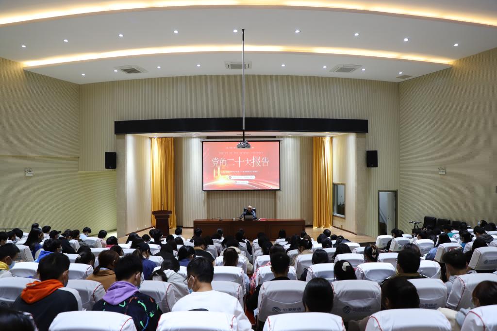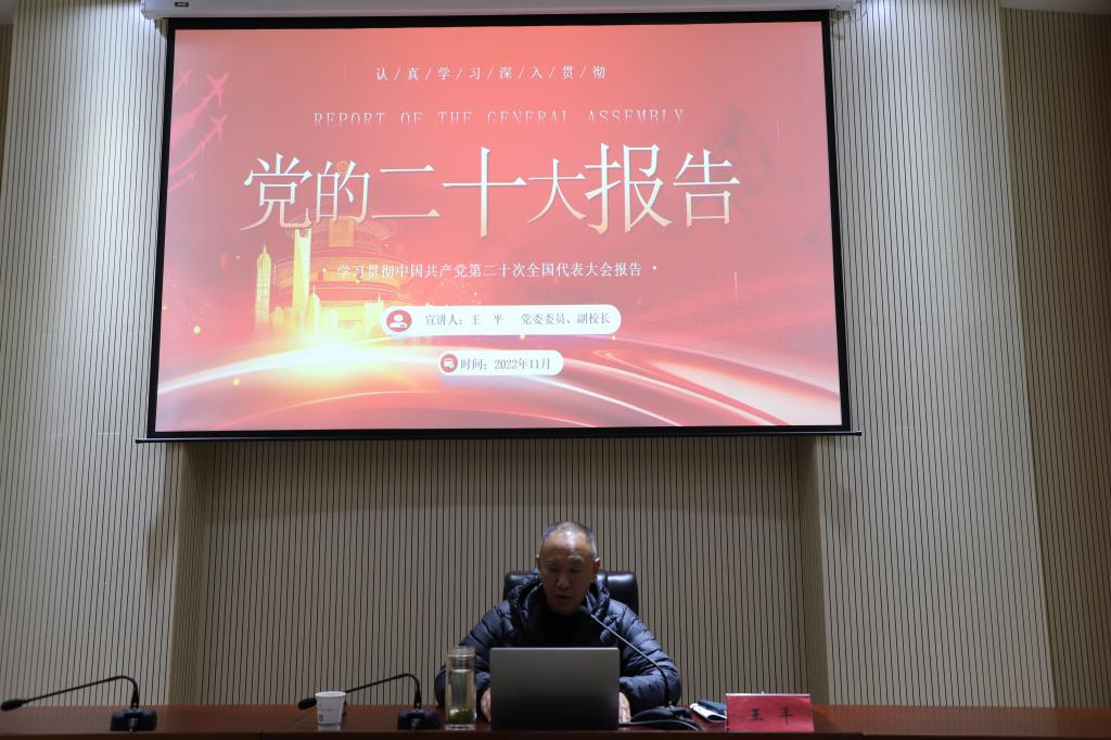 11月21日,学校党委委员、副校长王平在图书馆三楼学术报告厅为学生宣讲党的二十大精神并上思政课。