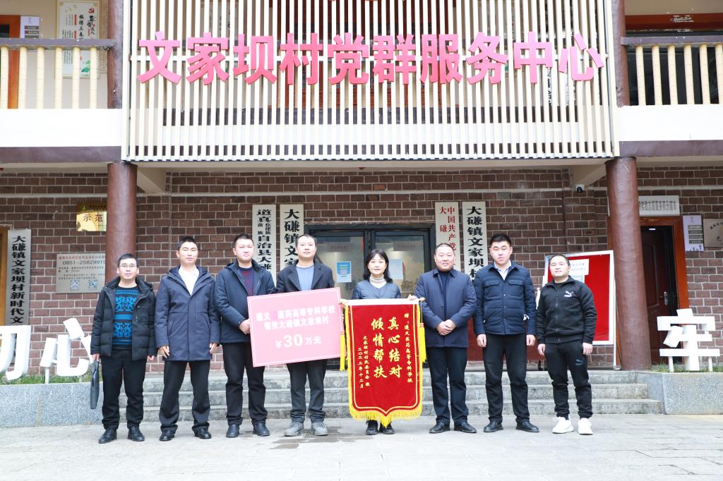 12月9日,学校党委书记孙逐赴道真县大磏镇文家坝村调研乡村振兴工作,代表学校向该村捐赠30万元。