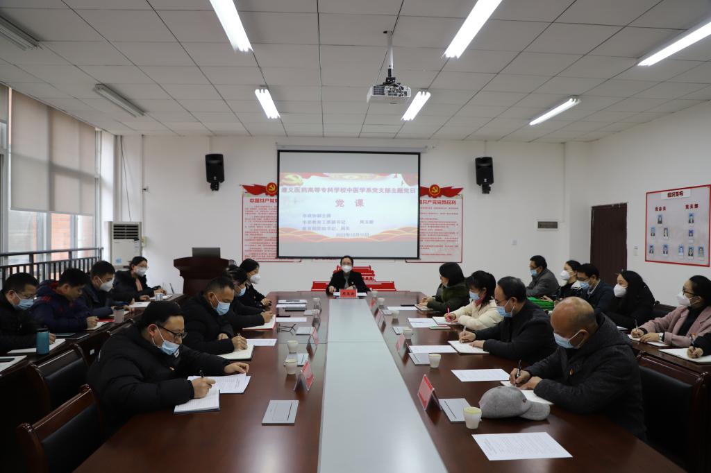 12月15日,市政协副主席、市委教育工委副书记、市教体局党组书记、局长周玉新到我校中医学系党支部参加主题党日活动并讲授党课。学校党委书记孙逐主持活动;党委副书记张武晓,组织人事处负责人,中医学系党支部全体党员聆听党课。