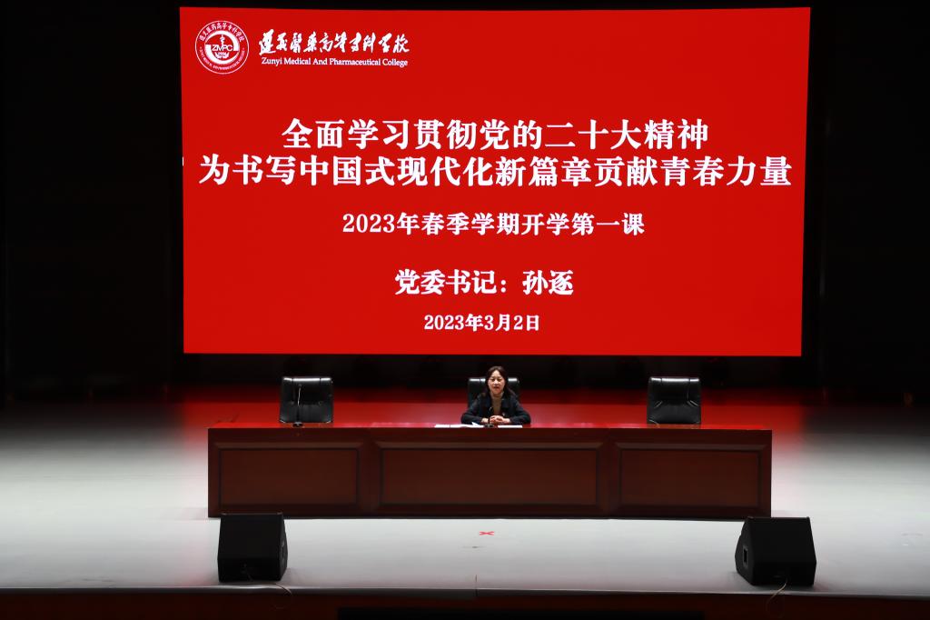 3月2日,学校党委书记孙逐,党委副书记、校长俞松分别为学生讲授“开学第一课”,深入贯彻落实习近平总书记重要讲话重要指示批示精神,教育引导学生自觉把“两个确立”的高度共识转化为“两个维护”的实际行动,沿着党的二十大指引的方向奋勇前进。