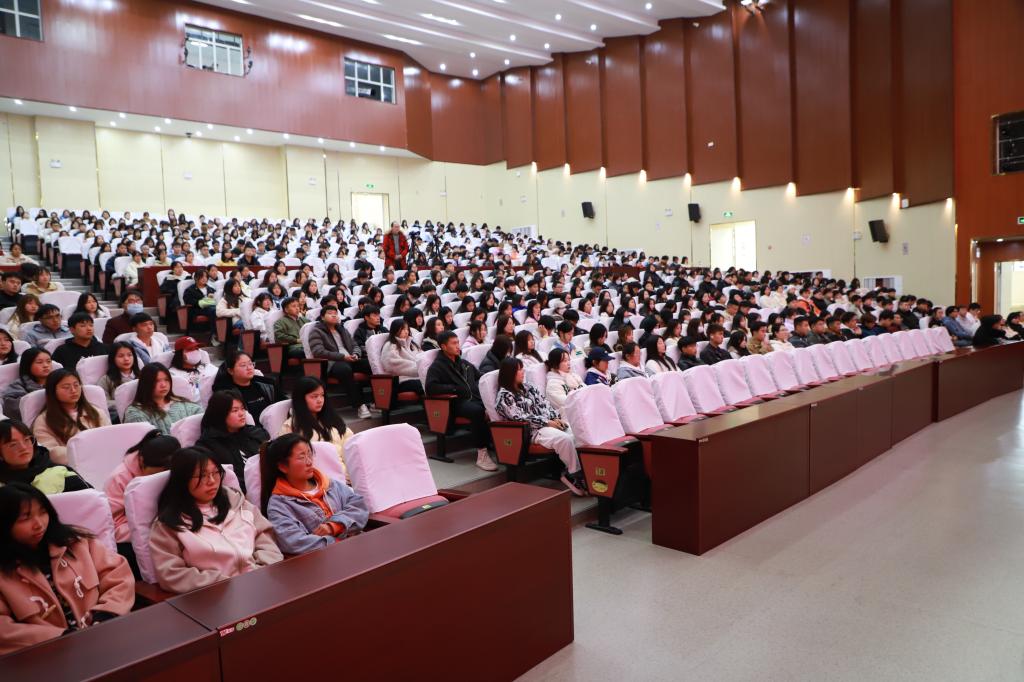 俞松结合自己在疫情防控“湖北保卫战”中驰援鄂州的亲身经历,站在专家学者的角度,为学生们剖析了我国因时因势动态调整疫情防控政策的精准举措,阐述了“生命至上、举国同心、舍生忘死、尊重科学、命运与共”的伟大抗疫精神,勉励同学们献身医学事业、激扬青春梦想、迈步复兴征程,努力成为推进中国式现代化的中坚力量。俞松希望同学们要眼界宽、学业精、格局大、有仁心,心中有理想,脚下有力量,做好到人间烟火处去,到乡村振兴一线去的准备,用现代医学知识为基层群众解除病痛,彰显医者道义与担当,成为让患者信任、让家属放心的济世良医。