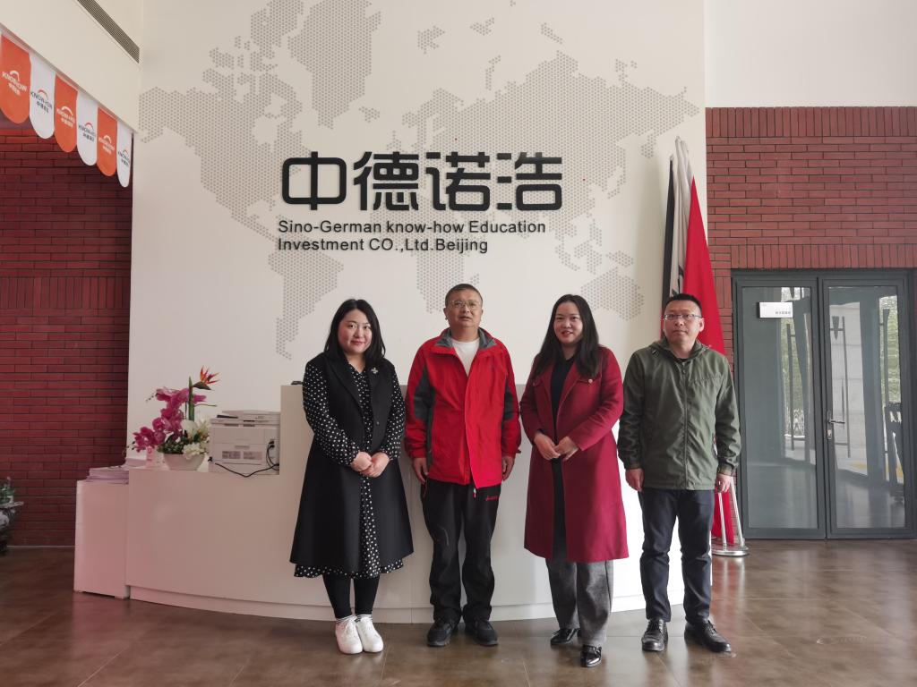 2023年3月22日上午,学校党委委员、副校长张彪携教务处处长刘亮拜访北京中德诺浩教育科技股份公司,开展访企拓岗活动,与中德诺浩教育科技股份公司总经理陈方方、校企合作总监周默在校企合作、中外合作办学、师资培养、康养专业建设等方面进行了交流沟通,增加了双方的了解,达成了深度合作的意向。