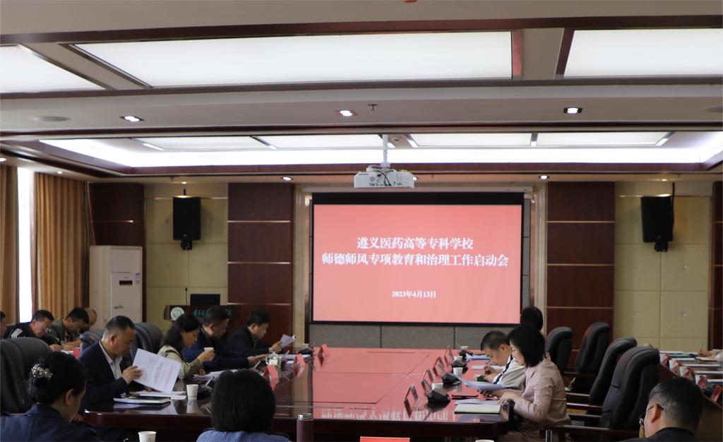 2023年4月13日下午,学校组织召开师德师风专项教育和治理工作启动会,党委书记孙逐,党委副书记、校长俞松等学校党政领导班子成员,各处(室)负责人,系(部、院)党政负责人参加会议。