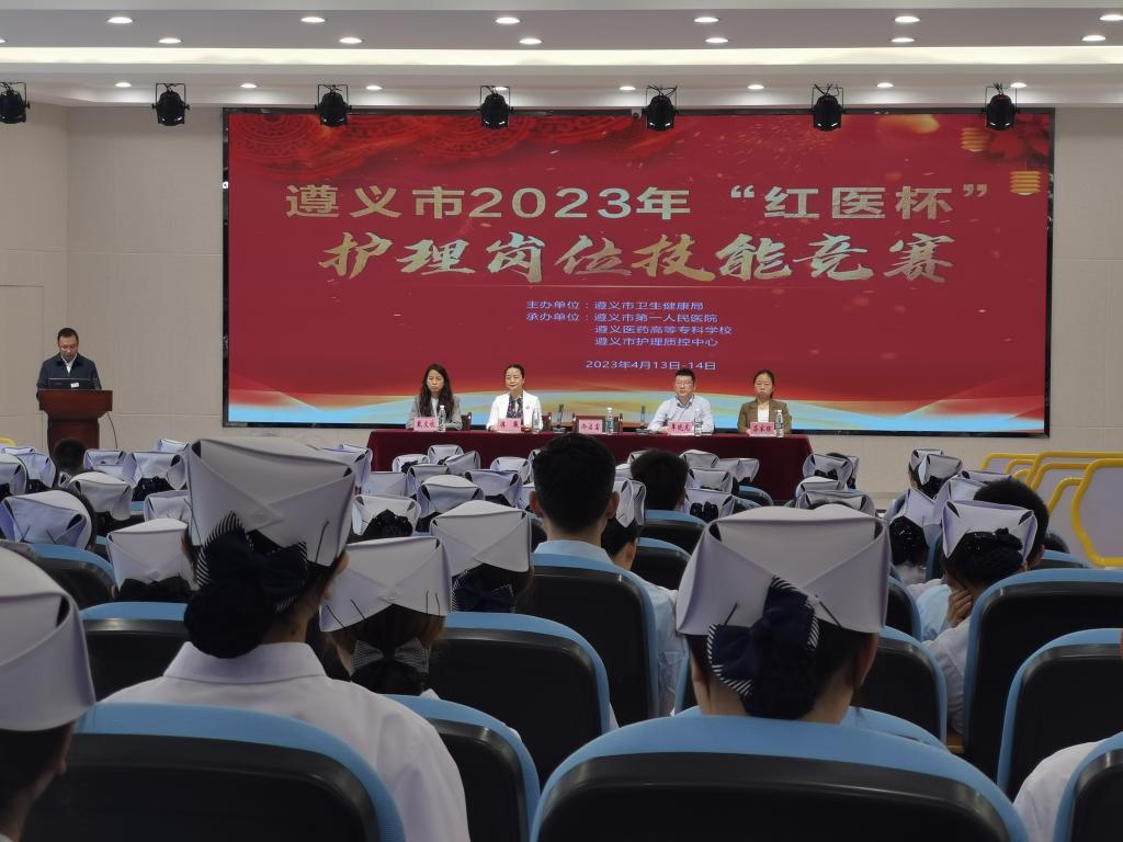 2023年4月13日,由遵义市卫生健康局主办,遵义市第一人民医院、开云app登录入口-开云(中国),承办,遵义市护理质控中心协办的遵义市2023年“红医杯”护理岗位技能竞赛开幕式在我校护理系A栋5楼会议室隆重举行,遵义市卫生健康局党委委员、副局长冷启富,学校党委委员、副校长覃晓龙,遵义市第一人民医院党委委员、副院长谭薇,遵义市护理质控中心主任苏家琼,大赛专家评委,遵义市各县、区参赛队的领队和选手等300余人参加了比赛开幕式,仪式由遵义市第一人民医院党委委员、副院长谭薇主持。