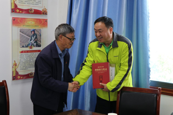 会上,汇川区2020年度“老有所为”先进个人陈华强向全体党员介绍了泗渡镇的文化历史,讲述支部致力于泗渡文化历史整理的工作历程及成果。陈华强同志勉励大家要牢记使命担当,用实际行动践行“为共产主义奋斗终身”的入党誓词。活动中,陈华强同志还将《泗渡镇文化志》《红军长征在遵义乡村故事实录》等书籍赠予基础教学部党支部,学校党委委员、副校长岳应权同志代表基础教学部党支部接受了赠书。