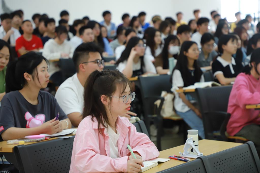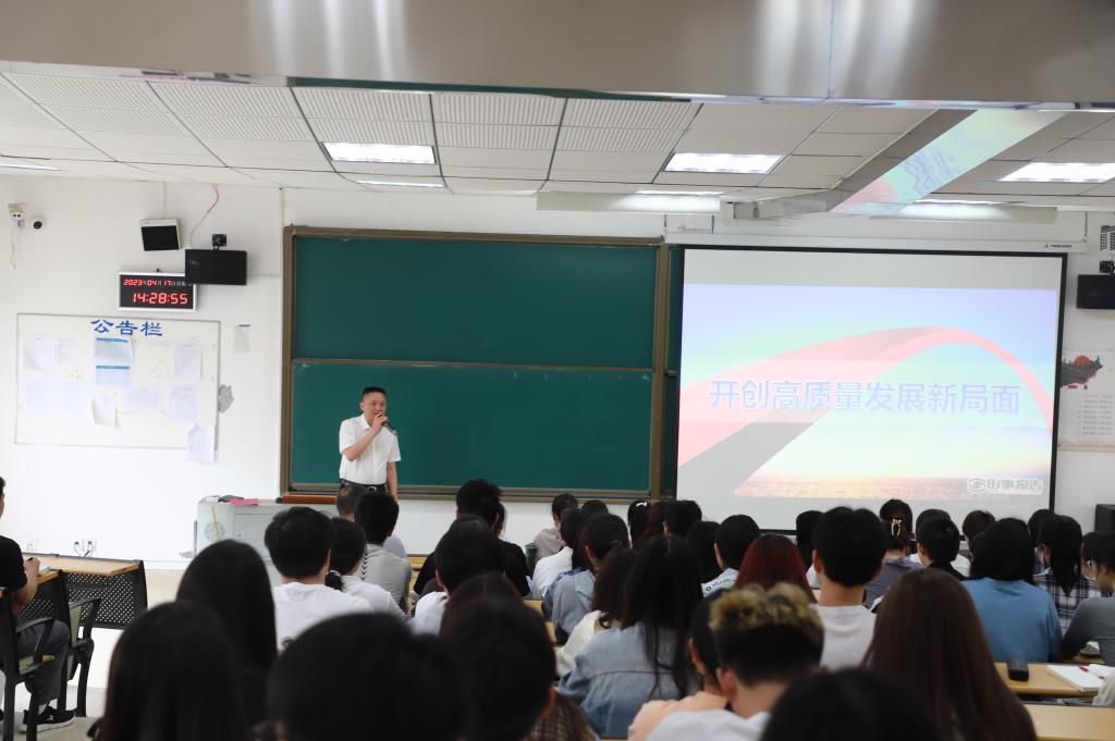 2023年4月17日,学校党委副书记、校长俞松在公教102为临床系学生讲授题为《开创高质量发展新局面》的“形势与政策”思政课。