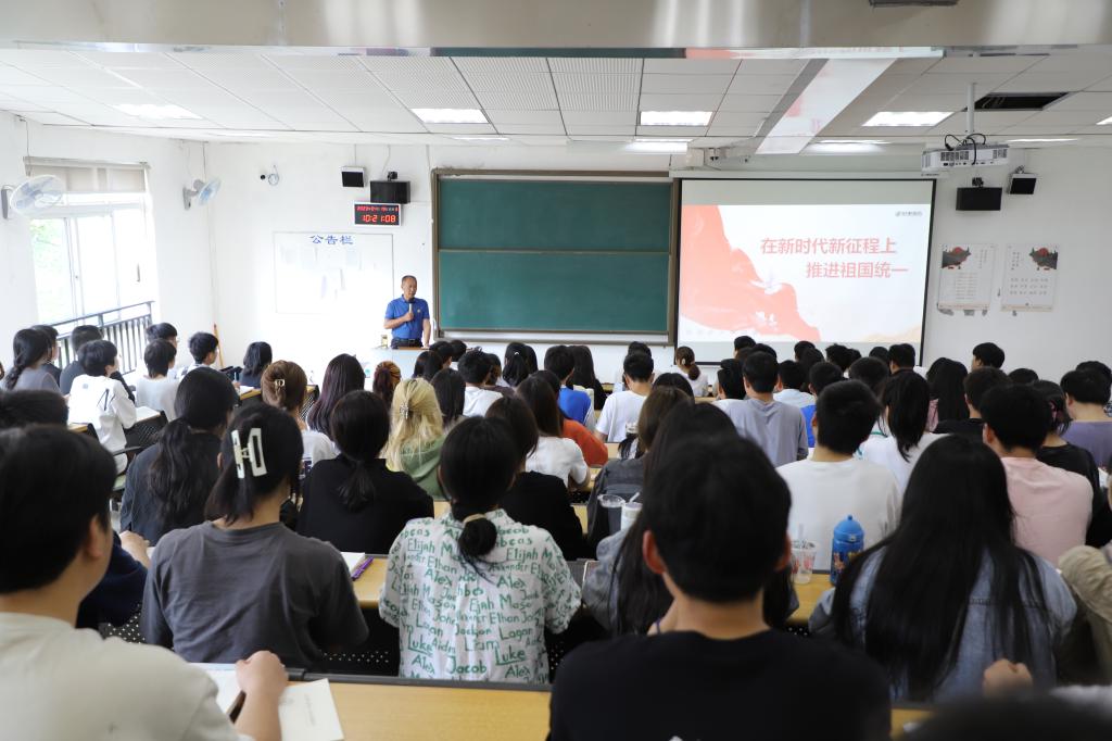 王平用鲜活的事例、通俗的语言、严谨的逻辑,为同学们带来了一堂富有思想性、理论性和亲和力、针对性的思政课。他讲到实现祖国完全统一,是中国共产党矢志不渝的历史任务,是全体中华儿女的共同愿望,是实现中华民族伟大复兴的必然要求。课程从三个方面立体式讲授了在新时代新征程上推进祖国统一:一是中国共产党为完成祖国统一大业的民族夙愿和历史使命接续奋斗的历程;二是推进祖国完全统一的时、势、义始终在祖国大陆这一边。任何人都不要低估中国人民捍卫国家主权和领土完整的坚强决心、坚定意志、强大能力;三是新时代我们党完成祖国统一的总体方略具有划时代的重大历史、理论、实践意义。