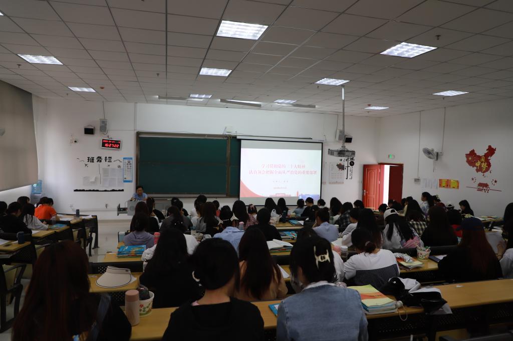 4月21日,学校党委委员、纪委书记徐洁为中医系学生讲授题为《学习贯彻党的二十大精神 认真领会把握全面从严治党重要部署》专题思政课。