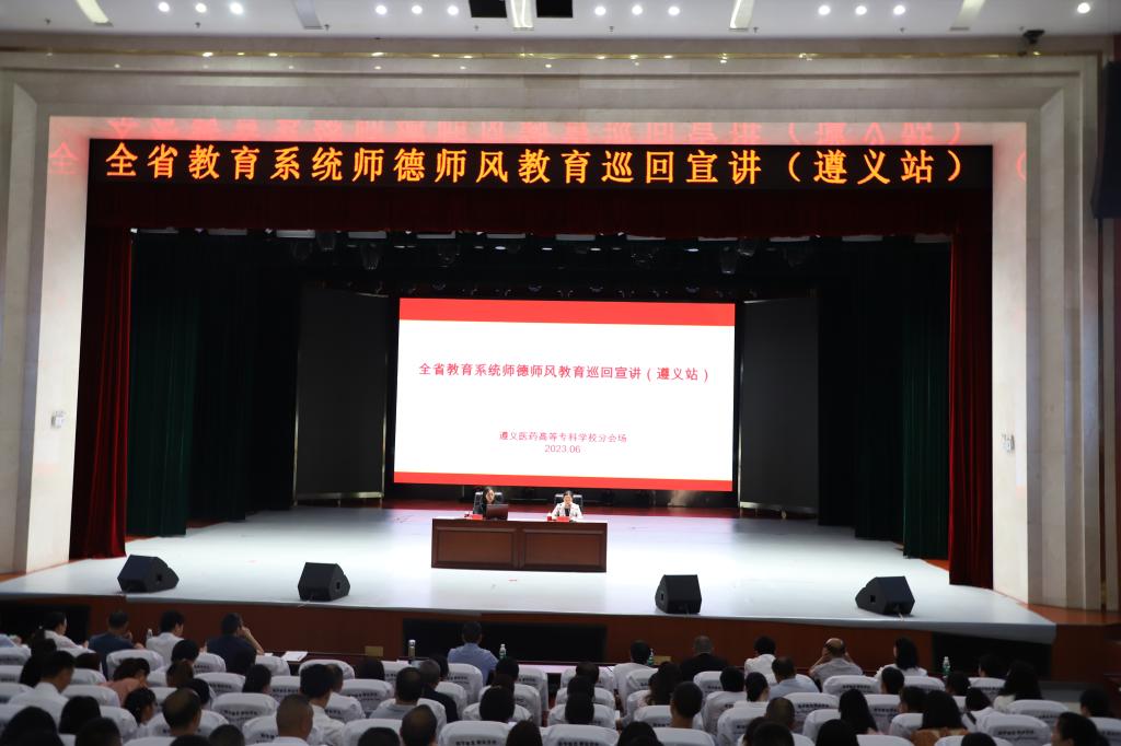 6月10日至11日,全省教育系统师德师风教育巡回宣讲(遵义站)在遵义市四所学校同步举行。期间,来自贵州师范大学的张葳、李红军、陈衍、陈新等四位教授、专家围绕《铸师魂,树师风——新时代师德师风建设》《坚持依法治校执教,潜心立德树人》《教师心理健康与自我调节》《守纪律讲规矩——做严格自律的教育工作者》主题,在开云app登录入口-开云(中国),进行宣讲。