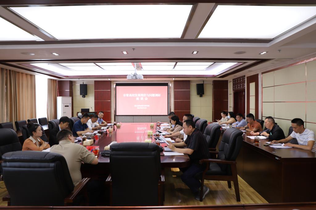 市委教育工委、市教体局、市财政局、市人社局有关负责同志,学校有关党政班子成员和部门负责人参加调研座谈。