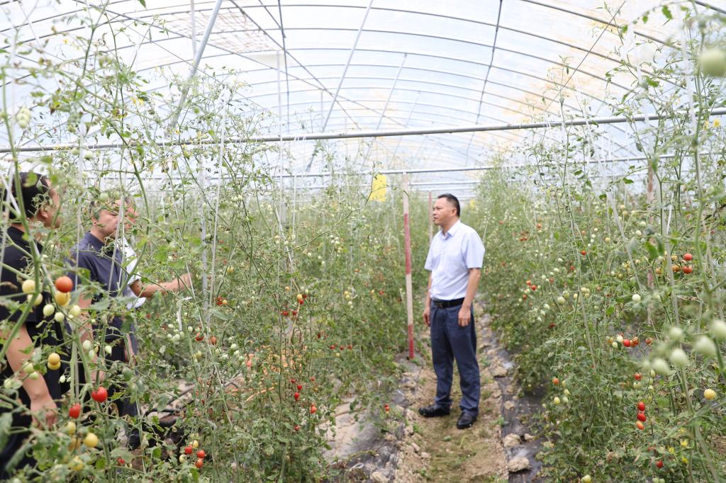 张武晓走进田间地头,实地察看高粱、圣女果、香瓜等产业发展情况。接近入秋,文家坝村的高粱已进入收获季节,沉甸甸的高粱穗挂满枝头,一株株高粱压弯了腰,成片的高粱地里红色与橙色交相辉映,一副丰收的景象。据该村负责人介绍,在遵义医专的帮扶和支持下,文家坝村今年发展高粱600亩,其中村集体经济领办180亩、大户领办300亩、散户种植120亩,由于管理得当、天气适宜,均喜获丰收,目前正准备进行收割,预计可实现产值100万元,村集体经济净创收10万元以上。