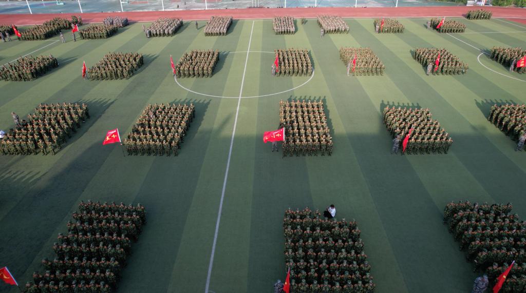 伴随着嘹亮的国歌声,鲜艳的五星红旗冉冉升起,2023级学生军训成果展演拉开了序幕。分列式表演,全体军训新生在教官、老师的带领下,经受住了炎炎烈日的考验,用饱满的精神、整齐的步伐、昂扬的斗志向学校交上了一份满意的答卷。