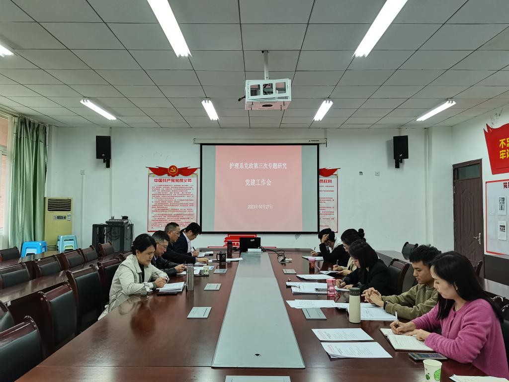 10月27日,护理系党政第三次专题研究党建工作会在党员活动室召开,校党委委员、副校长覃晓龙到场指导。会议由护理系党总支副书记王栎主持。