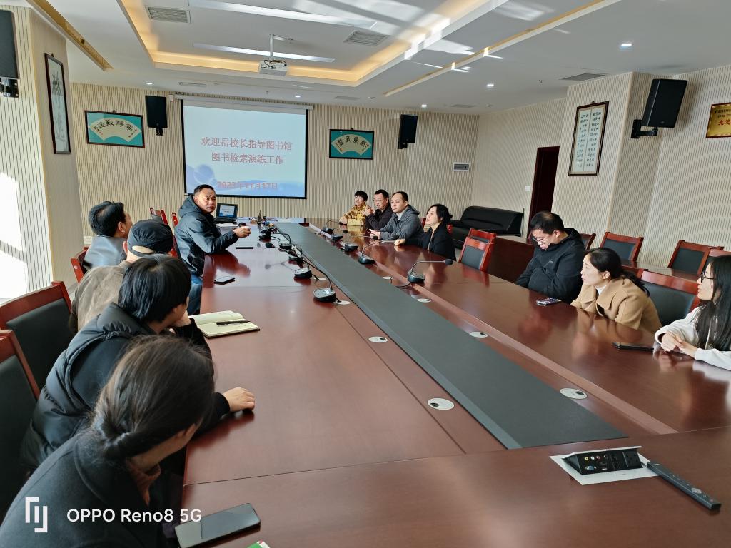 查看馆藏数据、随机抽取书目、下达“索书”指令、限定时间、检索对应图书、交到指定地点——这是11月17日图书馆开展图书检索演练工作时的场景。学校党委委员、副校长岳应权现场督导演练工作。