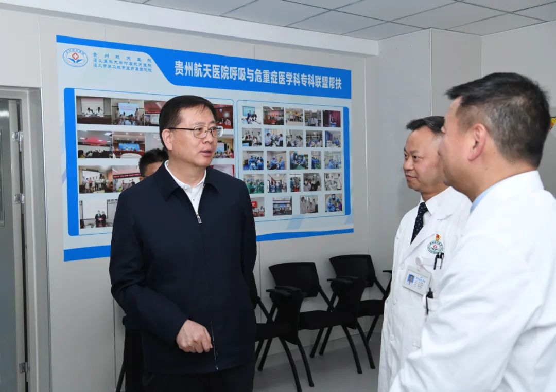 贵州航天医院现有2个国家卫健委能力建设和继续教育建设中心,1个省级重点学科,6个省级重点专科。李睿来到医院呼吸内科病区,与医院专家人才代表廖江荣深入交流,认真听取学科队伍、项目进度和公立医院高质量发展与改革示范项目建设情况,强调要持续深化“三医联动”改革,推动优质医疗资源扩容下沉和均衡布局,让更多改革红利惠及群众。在医院心内科高血压大数据远程管理中心,李睿详细了解就诊人员数量和结构、医护人员配备等情况,强调要统筹医疗资源布局和诊疗水平提升,充分发挥心内科学科特色优势,不断提升医疗服务水平和救治能力,守护好人民群众生命安全和身体健康。