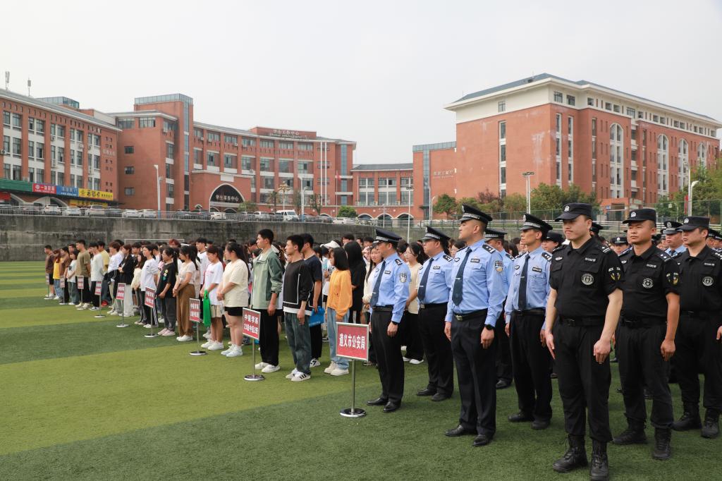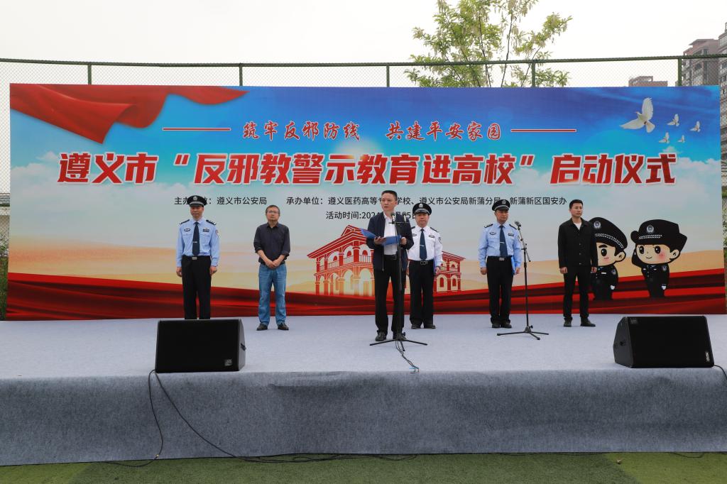 4月15日,在总体国家安全观提出十周年和第九个全民国家安全教育日之际,由遵义市公安局主办的全市“反邪教警示教育进高校”启动仪式在我校隆重举行。学校党委副书记、校长俞松,市公安局党委副书记、常务副局长邓志东,学校党委委员、副校长张彪出席活动。市公安局机关各部门负责人、新蒲分局民警及辅警代表、学校800余名师生代表参加活动。