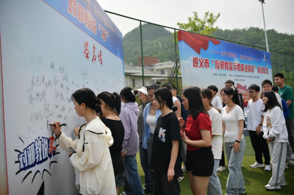 仪式上,学生代表作了发言;全体人员在“对邪教说不”的签名墙上集体签名,并观摩了反邪教警示教育专题展板;辖区民警现场对师生发放了反邪教警示教育宣传资料。活动结束后,召开了市公安局与学校维护高校安全座谈会,双方就进一步做好无缝对接、加强反邪教警示教育、全力维护校园安全等做了深入交流。