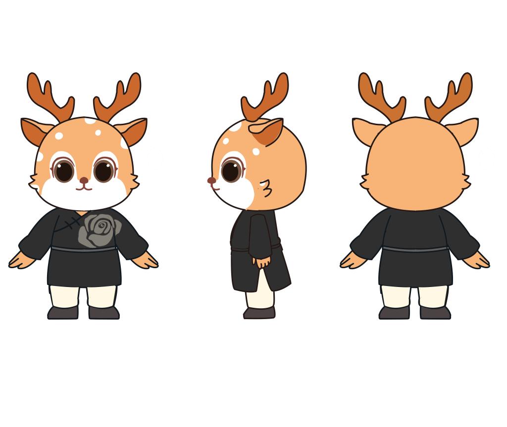 鹿:鹿茸茸,以中药为特色,以鹿头上的鹿茸象征,对应水、黑色、肾;
