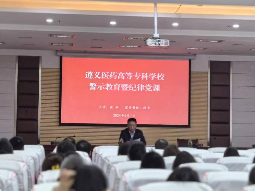 学校党政办党支部、纪委党支部、组织人事处党支部、计财处党支部、药学系党支部、临床系党支部、团委党支部100余名党员干部参加党课。开展党课之前,全体同志到贵州省黔北监狱接受警示教育,并认真学习了党纪学习教育有关反面典型案例。