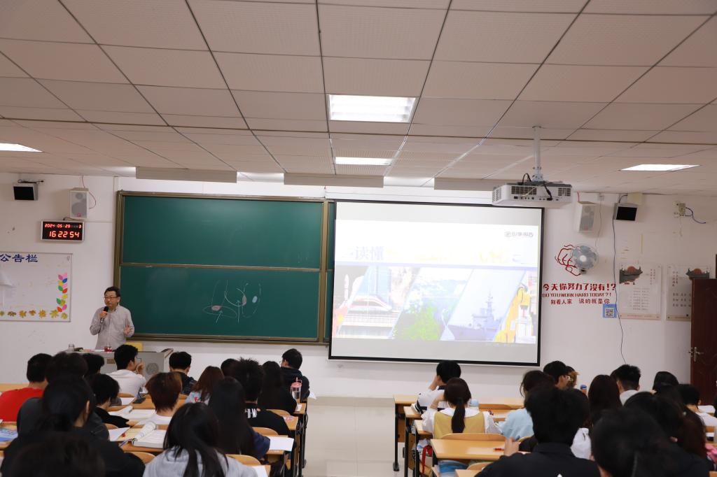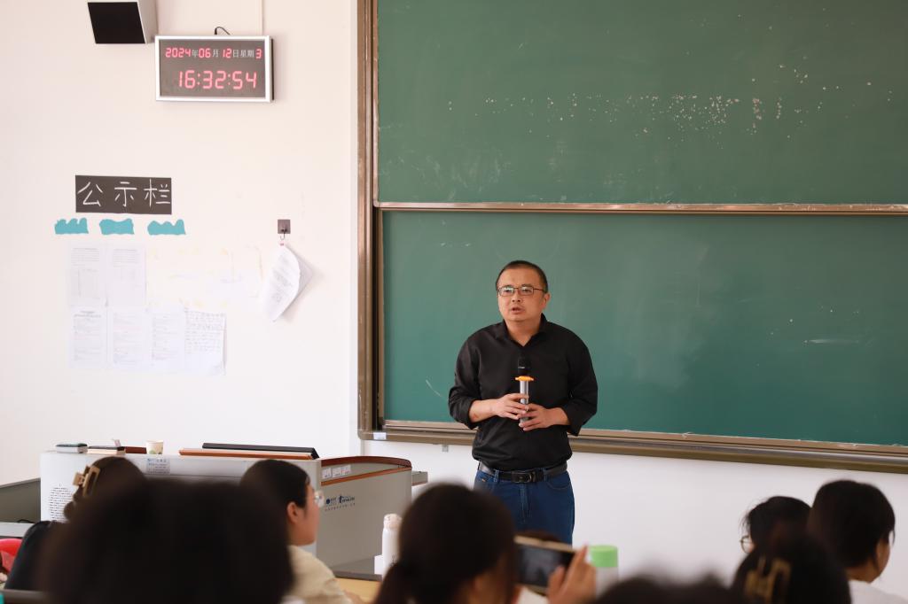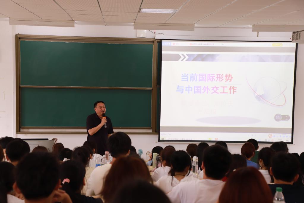 2024年6月13日下午7.8节学校党委委员、副校长岳应权在药学C201为23级药管1.2班学生讲授《当前国际形势与中国外交工作》