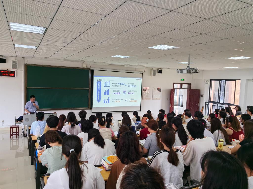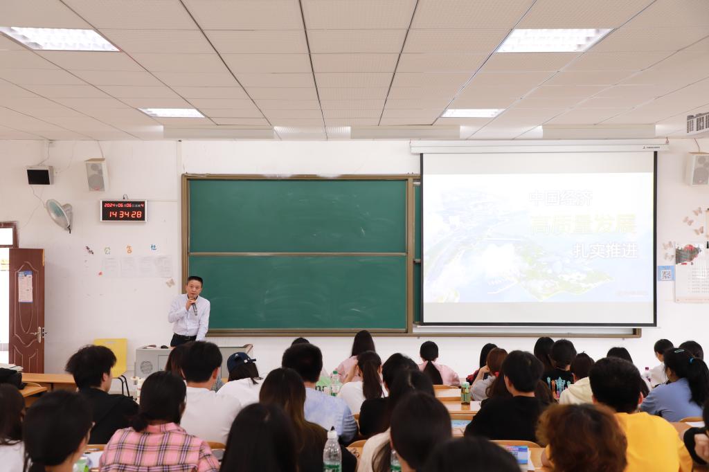 2024年6月12日晚自习1.2节学校党委副书记张武晓在综教302为23级医美1.2班学生讲授《当前我国经济形势与推动实现经济高质量发展》