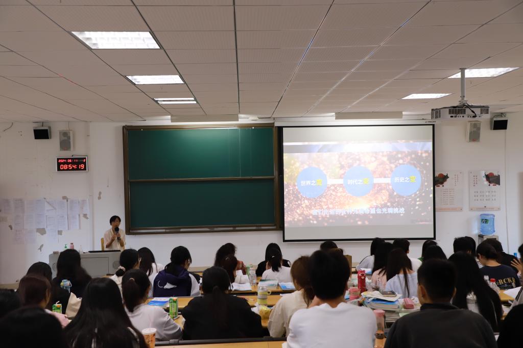 2024年5月29日上午3.4节学校党委委员、组织人事处处长魏颖在护理系B301为23级护理5.6班学生讲授《全面推进中国式现代化面临的机遇和挑战》
