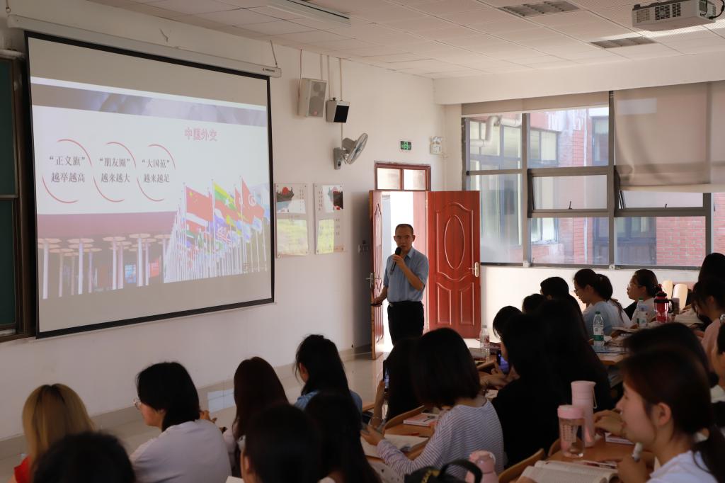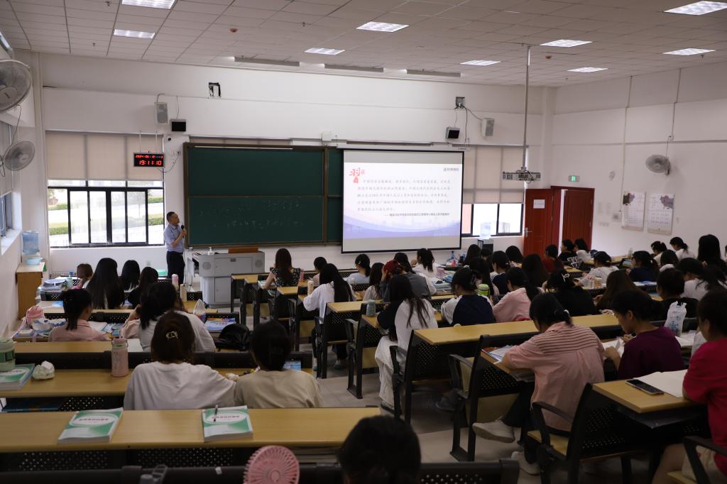 2024年6月14日上午1.2节学校党委委员、市中医院(学校附属中医院)党委书记杨跃岚在护理系B401为23级护理9.10班学生讲授《当前国际形势与中国外交工作》