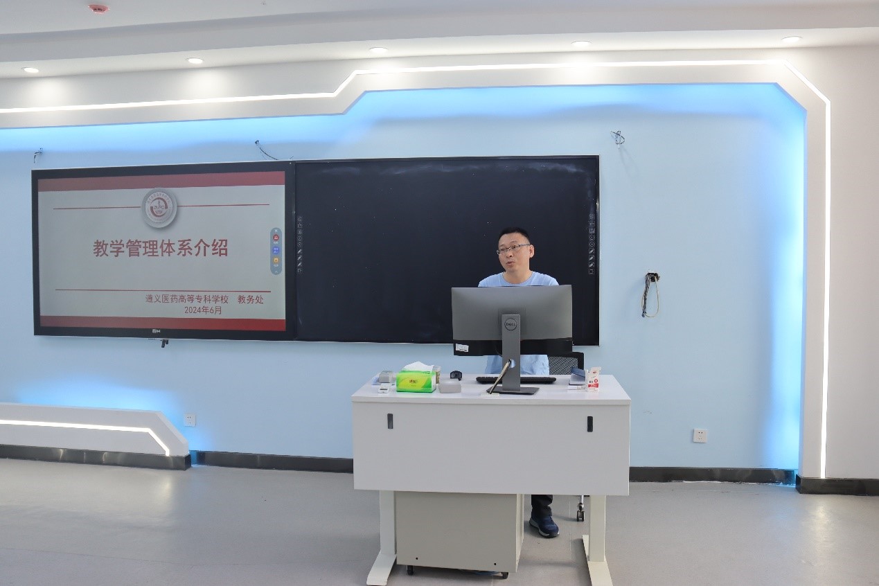 围绕“如何开展教学工作”,教务处处长刘亮介绍了学校的教育管理体系,教务处副处长郭丽娜通过实操展示课程思政如何融入教学实践,最后临床医学系教师李玲通过15分钟示范课教学帮助全体新教师更迅速更全面地了解学校教学工作全流程。